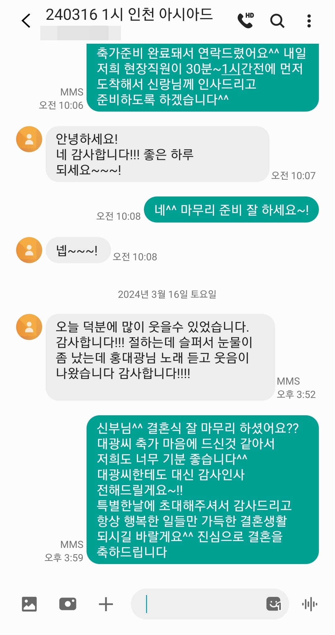 Áö³ 3¿ù 16ÀÏ ÀÎõ ¾Æ½Ã¾Æµå¿þµùÄÁº¥¼Ç¿¡¼ ÁøÇàµÈ °¡¼ö È«´ë±¤ °áÈ¥½ÄÃà°¡ ÈıâÀÔ´Ï´Ù^^