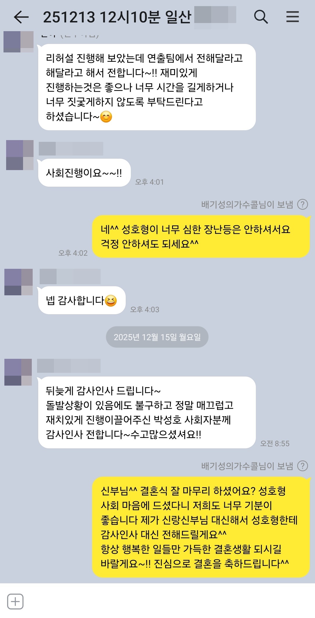 Áö³ 12¿ù 13ÀÏ ÀÏ»ê º£³×Ä¡¾Æ¿þµùȦ¿¡¼ ÁøÇàµÈ °³±×¸Ç ¹Ú¼ºÈ£ °áÈ¥½Ä»çȸ ÈıâÀÔ´Ï´Ù^^ ½ÅºÎ´Ô²²¼ »çȸ ³Ê¹« ÀçÄ¡ÀÖ°Ô Àß ÇØÁּż °¨»çÇÏ´Ù°í ÀÌ·¸°Ô °¨»ç ¿¬¶ôÀ» Áּ̾î¿ä~!! Ưº°ÇÑ ³¯¿¡ ÃÊ´ëÇØÁּż °¨»çµå¸®°í Ç×»ó ÇູÇÑ °áÈ¥»ýȰ µÇ½Ã±æ ¹Ù¶ö°Ô¿ä^^