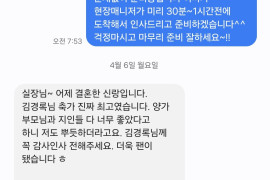 03-09지난 3월 7일 성남 메종디탈리에서 진행된 VOS 박지헌&최현준 결혼식축가 후기입니다^^ 신랑님이 너무 센스있고 좋았다고 이렇게 감사연락을 주셨…