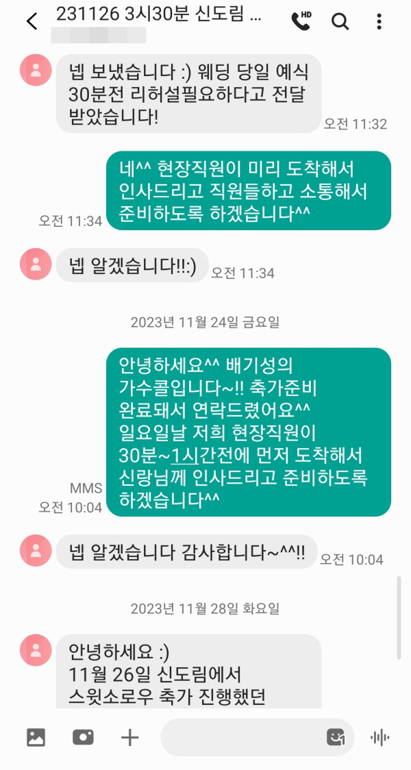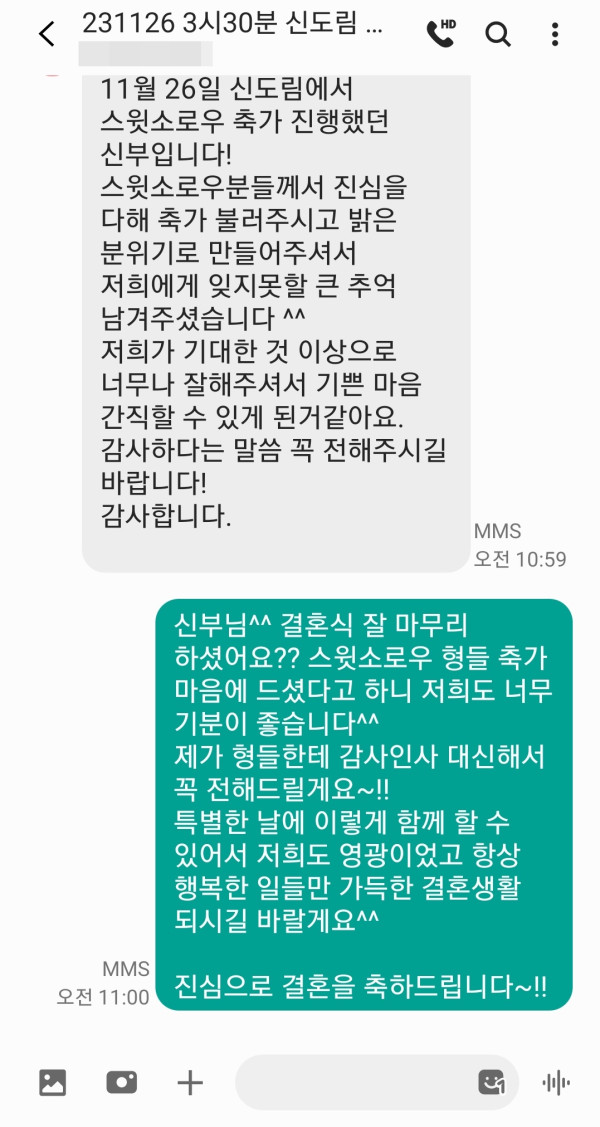 11월 26일 스윗소로우 결혼식축가 후기입니다^^