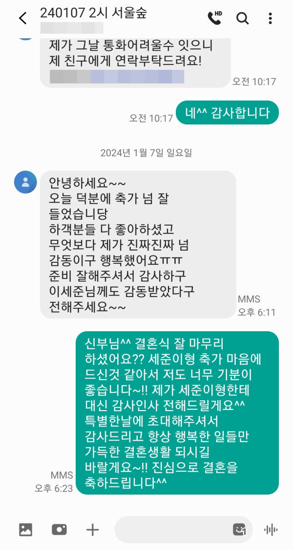 저희가 대신 감사인사 전해드렸고 특별한 날에 초대해주셔서 감사드립니다