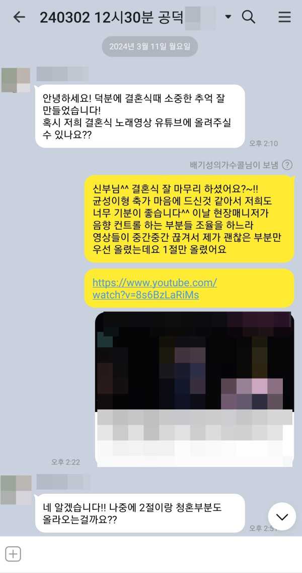 지난 3월 2일 공덕 이룸컨벤션에서 진행된 노을 강균성 결혼식축가 후기입니다^^