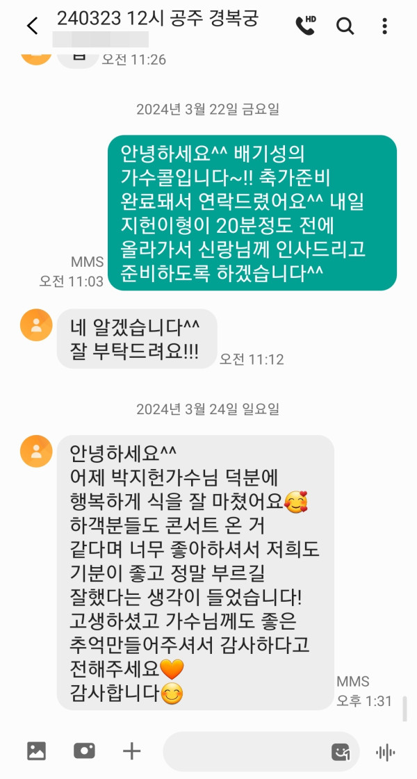 지난 3월 23일 공주 경복궁웨딩컨벤션에서 진행된 VOS 박지헌 결혼식축가 후기입니다^^