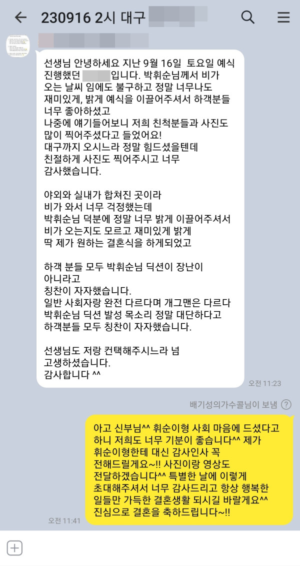 9월 16일 개그맨 박휘순 결혼식사회 후기입니다^^