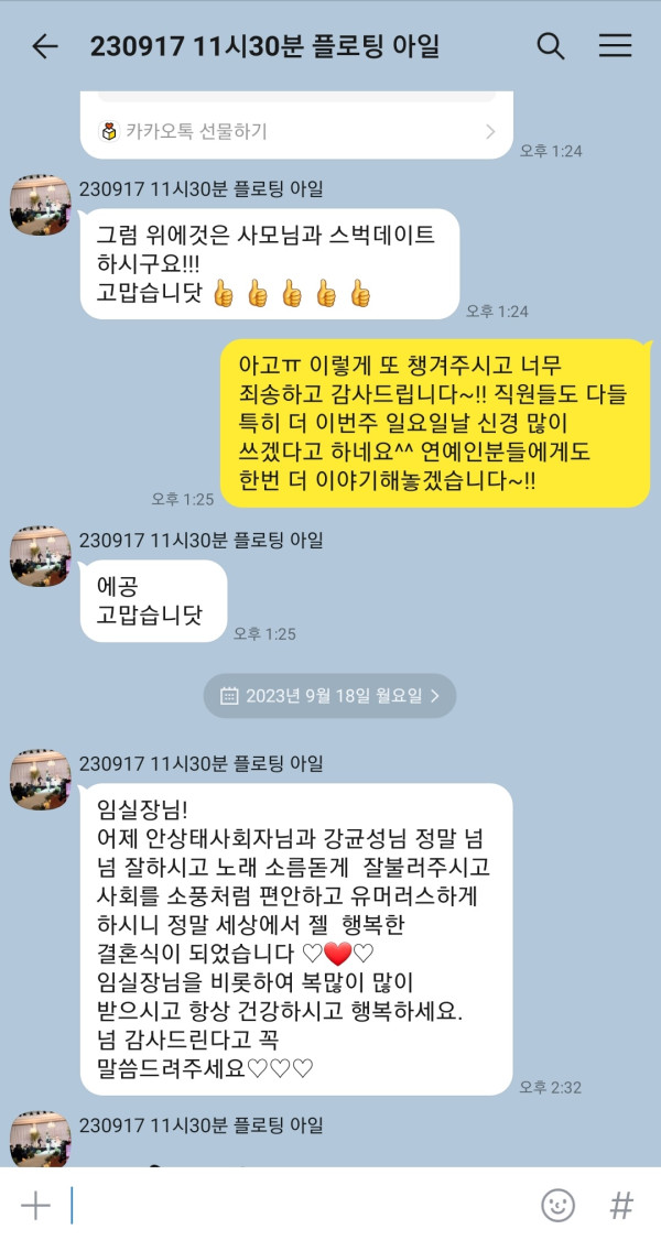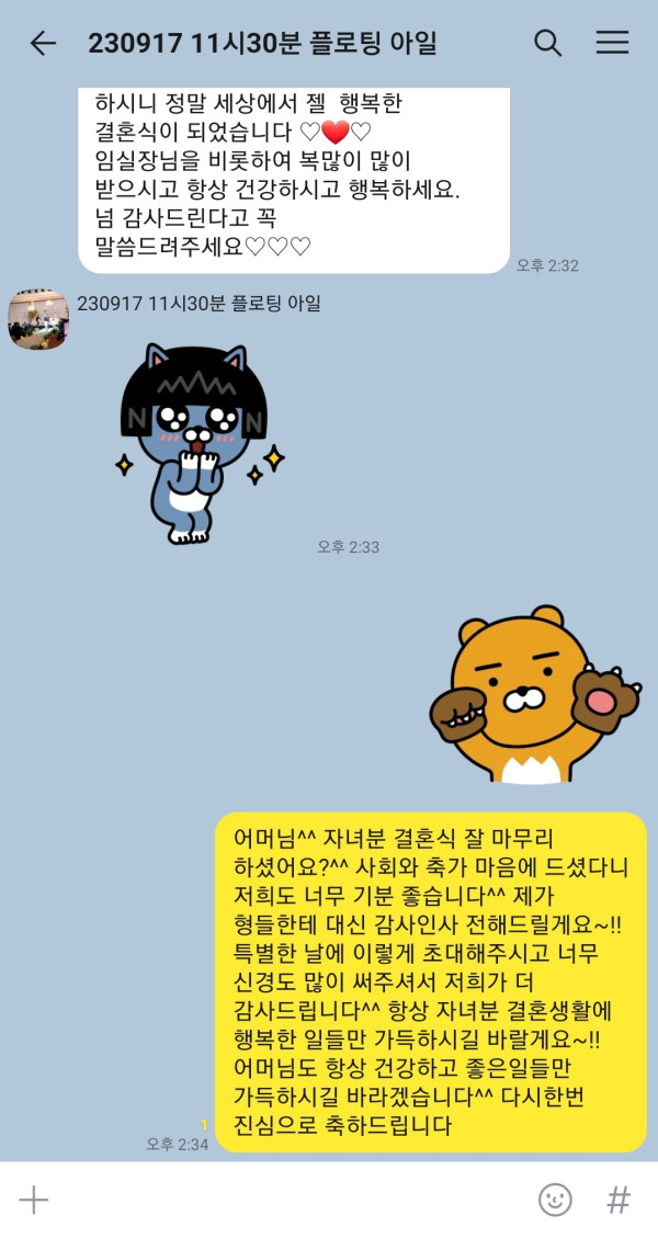 감사 연락을 주셨어요~!! 특별한 날에 초대해주셔서 감사드리고