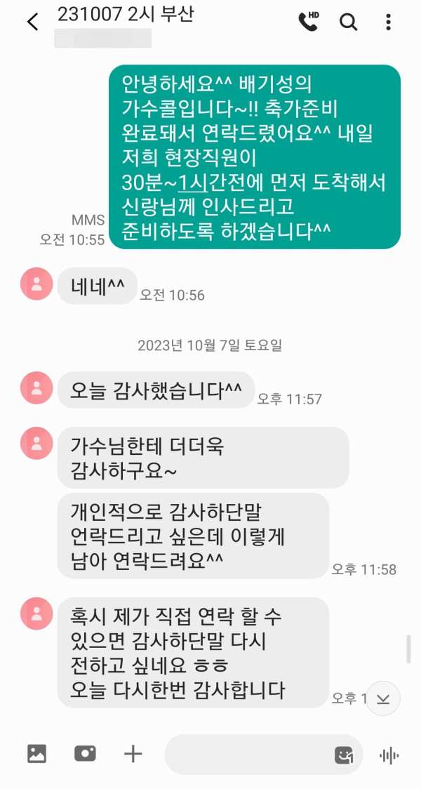10월 7일 디셈버DK 결혼식축가 후기입니다^^ > 고객후기 | 배기성의 가수콜