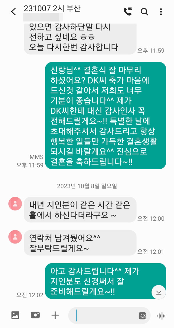 10월 7일 디셈버DK 결혼식축가 후기입니다^^