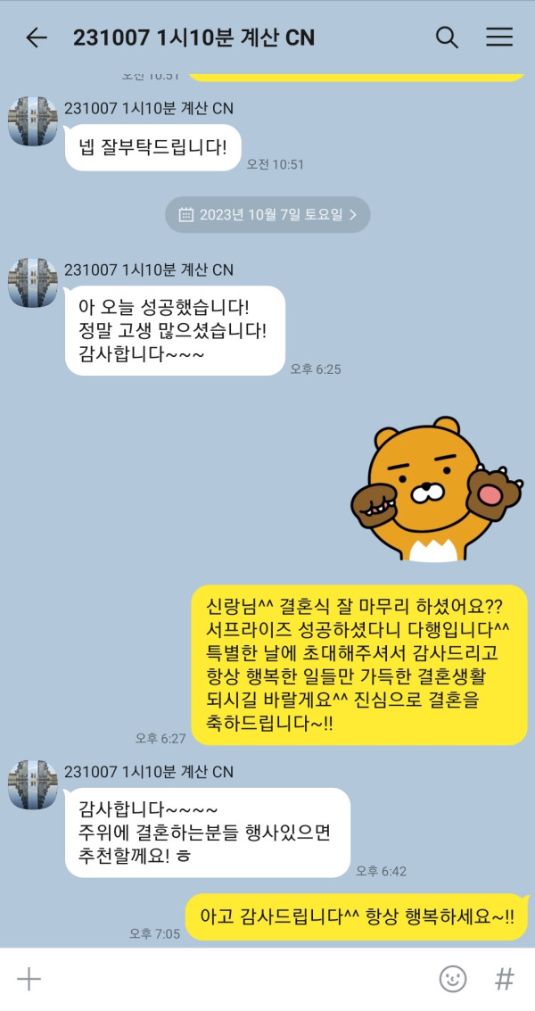 감사 연락을 주셨어요^^ 주변에 많이 소개해주시겠다고 하네요~!!