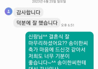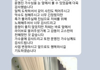 지난 6월 25일 김해 JW컨벤션에서 진행된 가수 송이한 결혼식축가 후기입니다^^ 신랑 신부님 두분 다 축가 너무 만족하셨다고 계속 흥얼거리신다고 하더라구요 감사연락을 이렇게 주셨는데 저희가 대신 송이한씨께 감사인사…