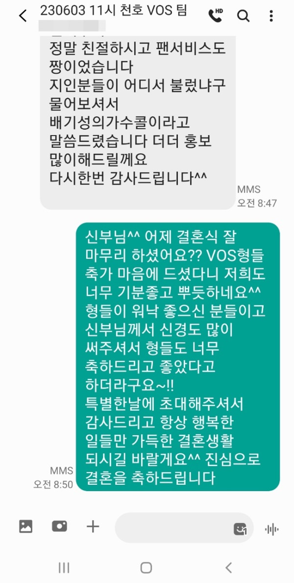 6월 3일 가수 vos 결혼식축가 후기입니다^^