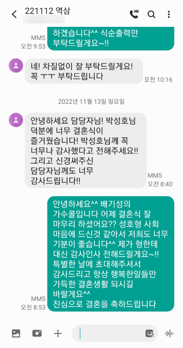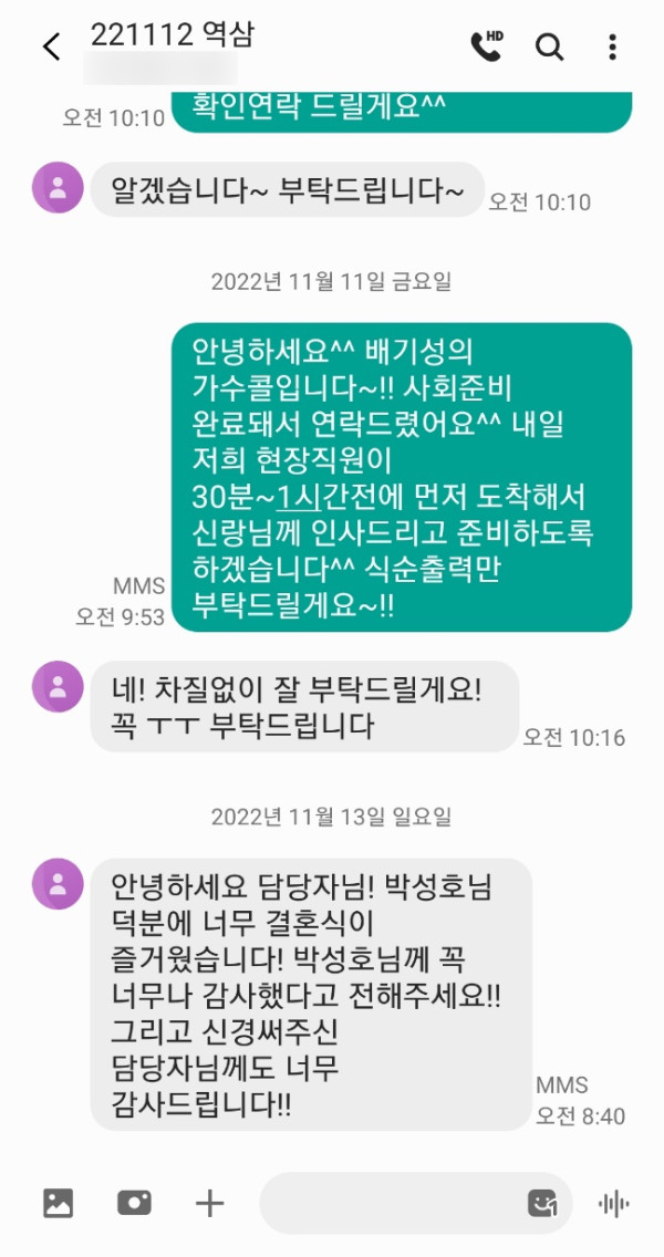 신부님께서 개그맨 박성호님 결혼식사회축가 너무 좋았다고 유쾌하고 다들 너무 좋아하셨다고 감사의 연락을 주셨어요~!!