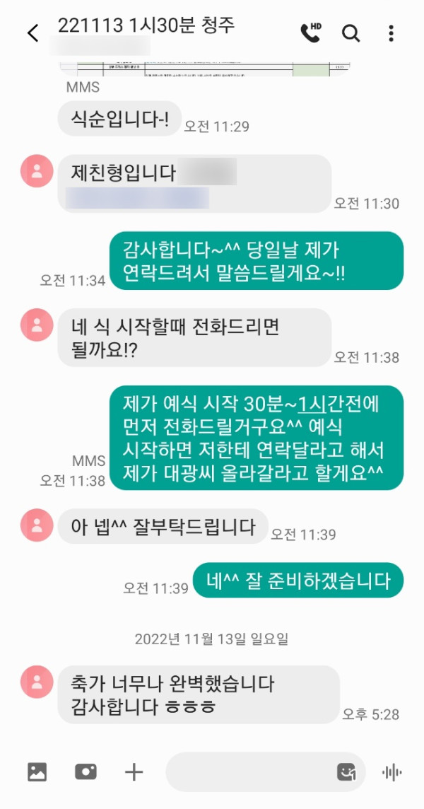 지난 11월 13일 청주 더빈컨벤션에서 진행된 가수 홍대광 결혼식축가 후기입니다^^