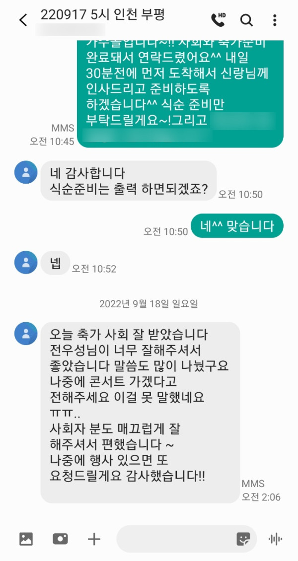 전문사회자 매끄럽게 잘 진행하셔서 편했다고 하시네요^^