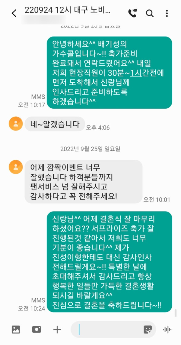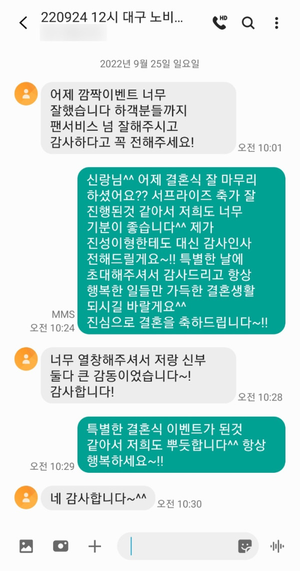깜짝 이벤트도 잘 진행되고 하객들과 사진촬영도 잘 해주셔서