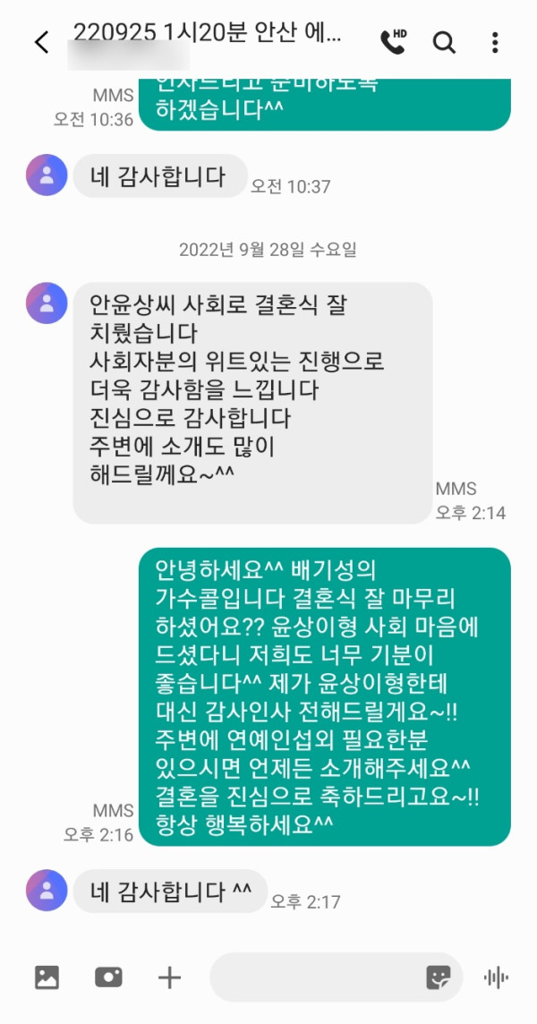 9월 25일 개그맨 안윤상 결혼식사회 후기입니다^^