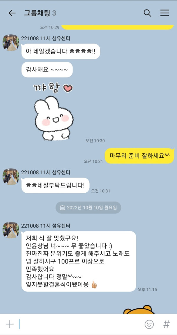 - 다음글10월 8일 가수 스윗소로우 결혼식축가 후기입니다^^ 22.11.27