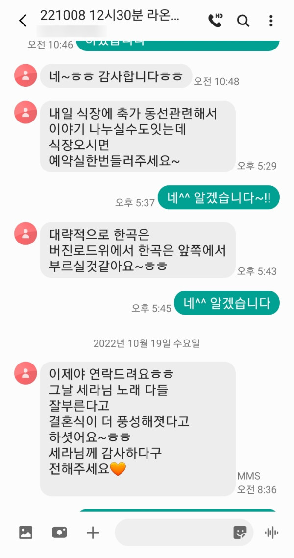 10월 8일 제이세라 결혼식축가 후기입니다^^