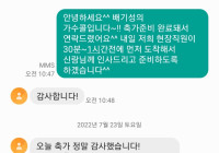 지난 7월 23일 대구 퀸벨호텔에서 진행된 울랄라세션 박광선 결혼식축가 후기입니다^^ 신랑님께서 광선씨 축가 너무 좋았다고 감사하다고 이렇게 연락을 주셨어요~!! 주변 지인분들도 많이 소개해주신다고 하셨어요^^ 특별…