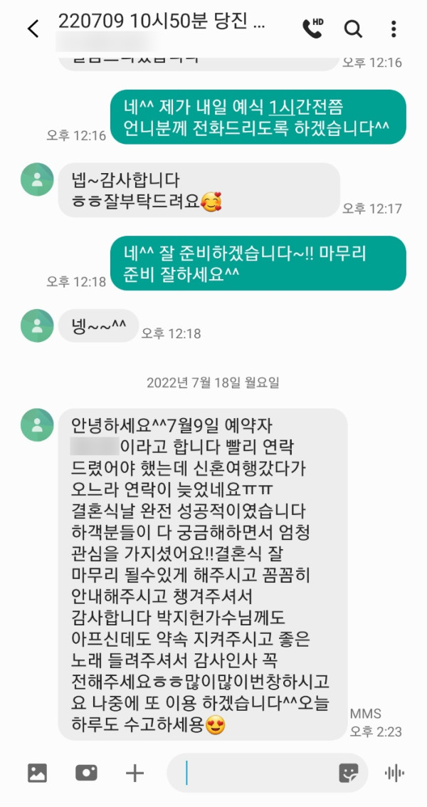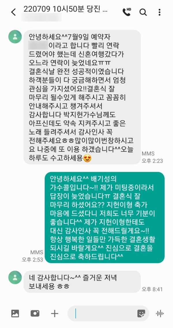 7월 9일 VOS 박지헌 결혼식축가 후기입니다^^
