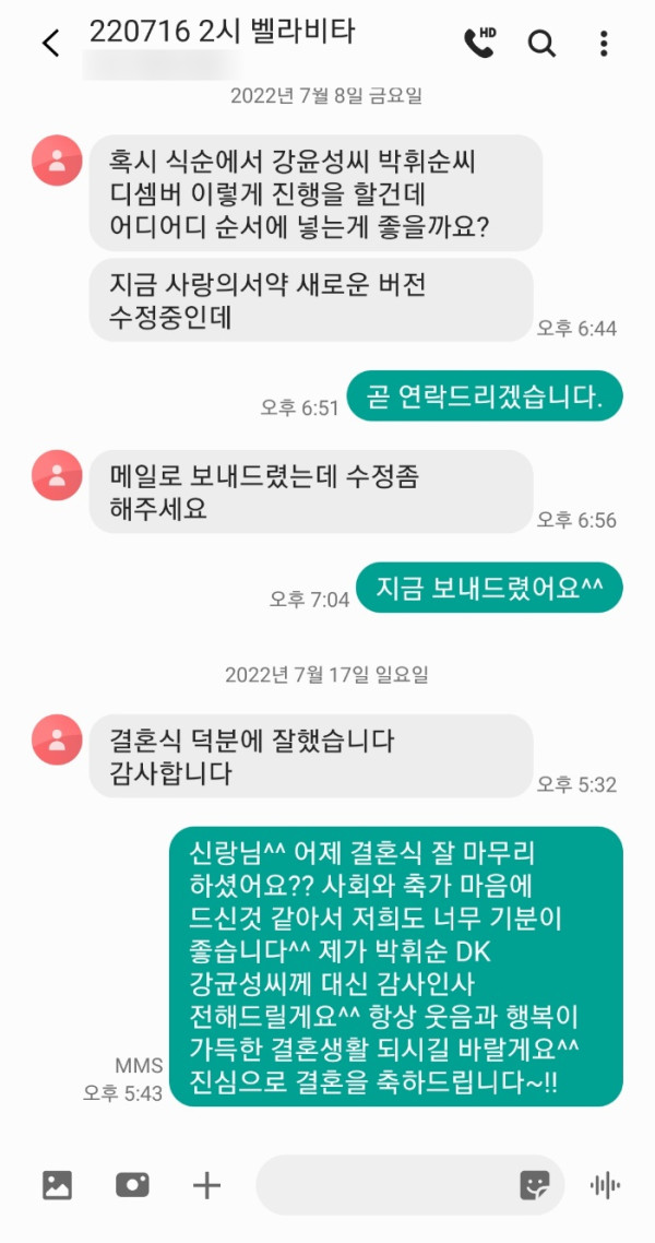 지난 7월 16일 벨라비타웨딩홀에서 진행된