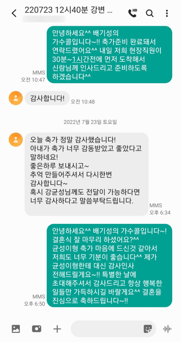 7월 23일 노을 강균성 결혼식축가 후기입니다^^