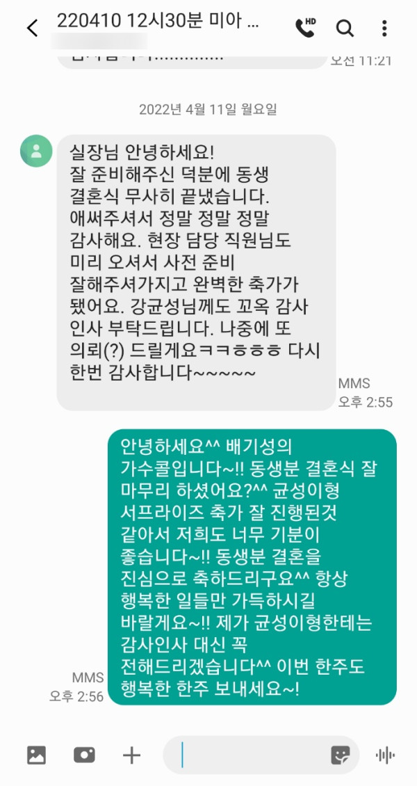 너무 좋았다고 이렇게 감사의 연락을 주셨어요^^