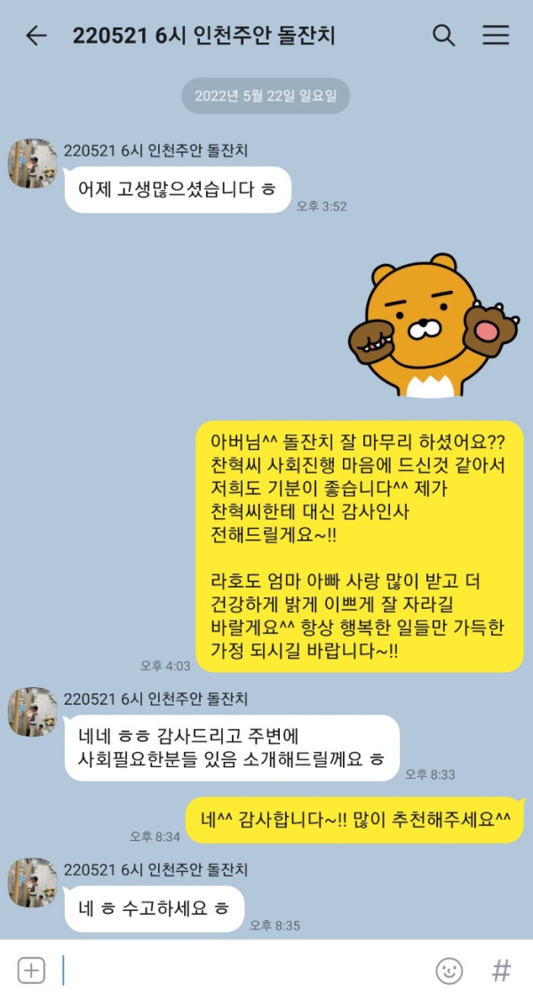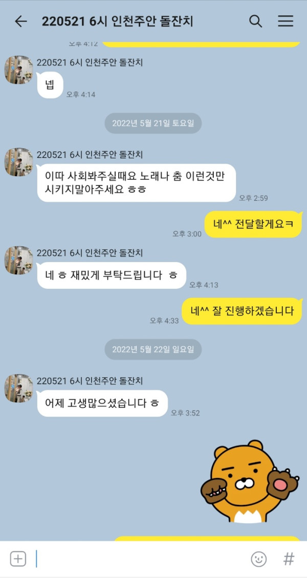 사회 너무 재미있게 잘 해주셨다고 이렇게 감사연락을