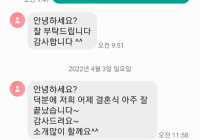 3월 26일 강릉 씨마크 호텔에서 진행된 유리상자 이세준 결혼식축가 후기입니다^^ 신랑님께서 축가 너무 감동적이었다고 감사인사 대신 꼭 전해달라고 이렇게 연락을 주셨어요~!! 저희가 대신 전해드렸어요^^ 특별한 날에…