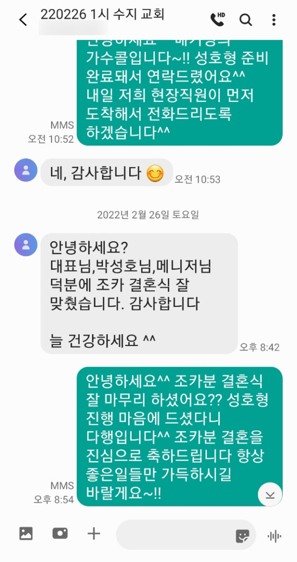 섭외하신 삼촌분께서 너무 흡족해하셔서 이렇게 감사의 연락을