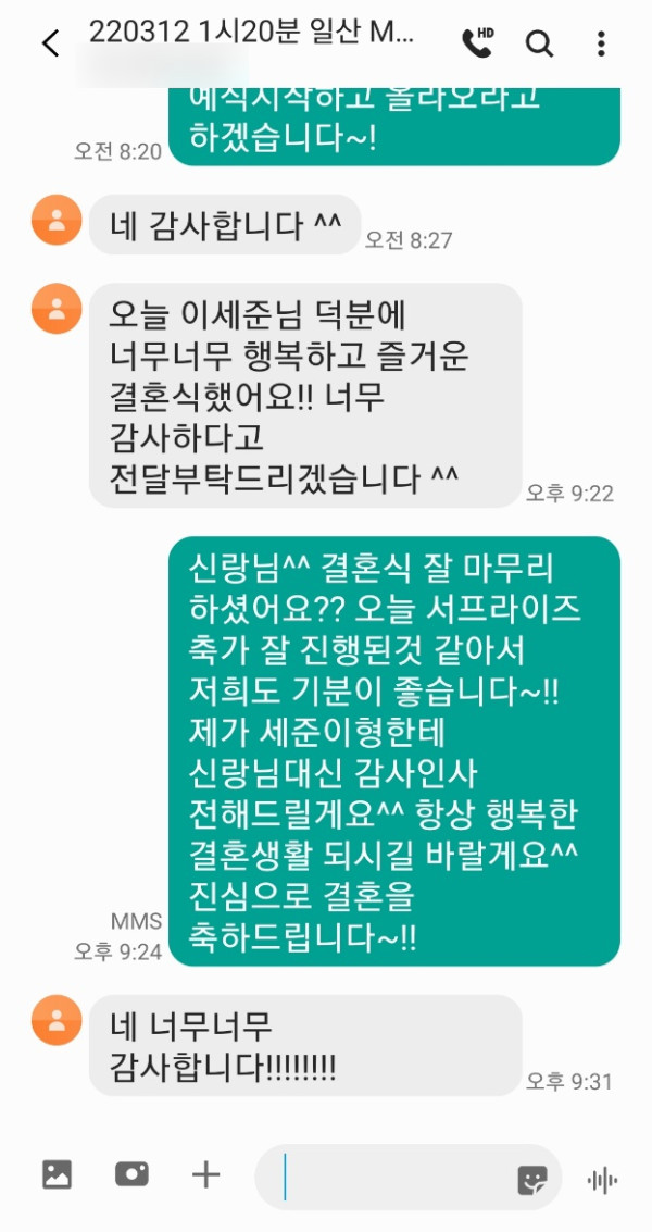 신랑님께서 너무 행복하고 즐거운 결혼식 됐다고