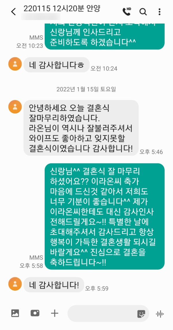 1월 15일 이라온 결혼식축가 후기입니다^^