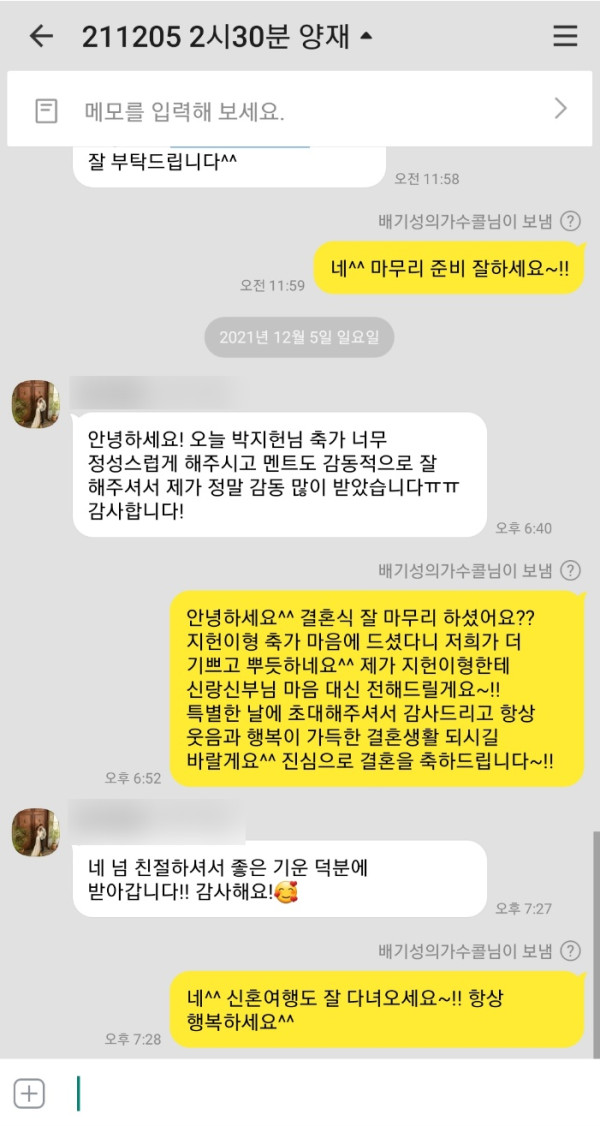 멘트도 잘해주셔서 너무 감사드린다고 이렇게 연락을 주셨어요^^