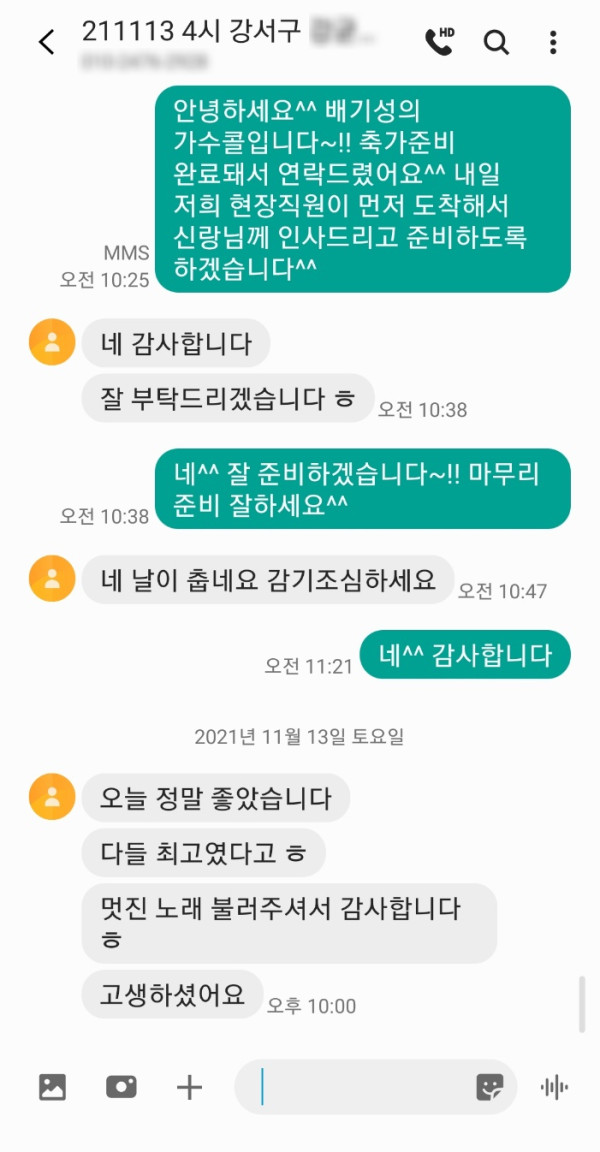 신랑님께서 축가 반응도 너무 좋았고 최고였다고