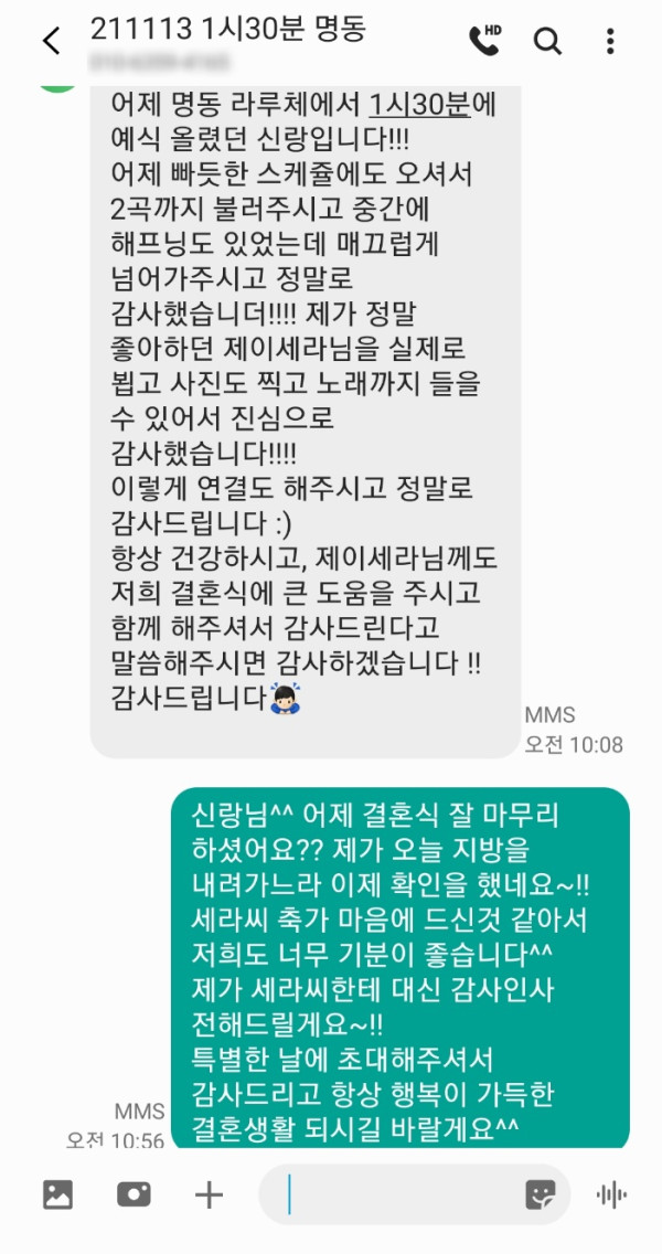 11월 13일 제이세라 결혼식축가 후기입니다^^