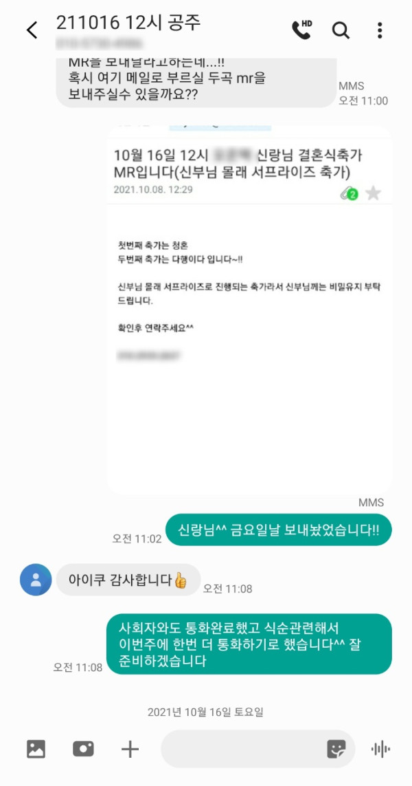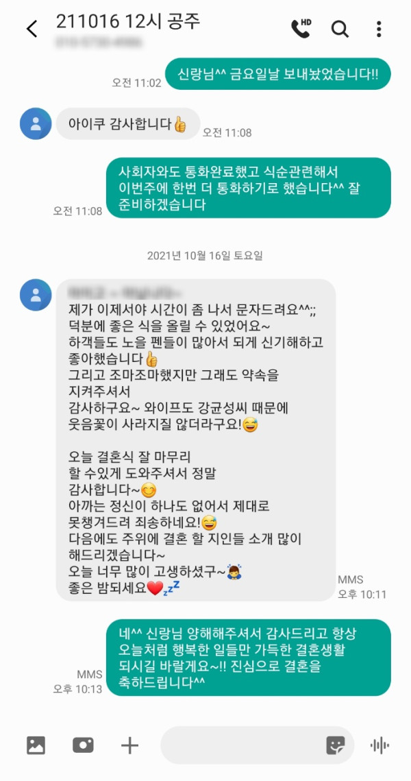 너무 좋아하셨고 신랑님도 이렇게 감사하다고 연락을 주셨어요^^