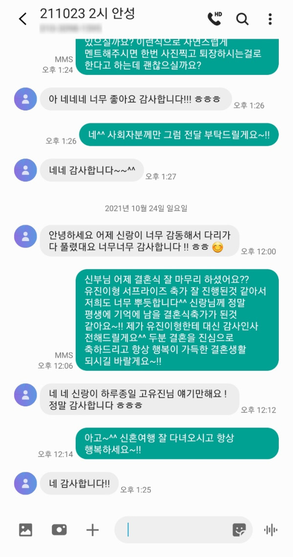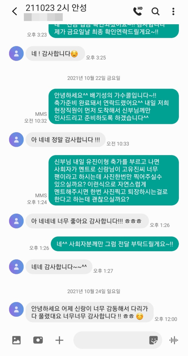신랑님이 너무 좋아하셨다고 이렇게 감사하다고 연락을 주셨어요^^