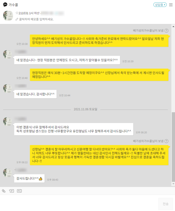 신랑님께서 신혼여행 다녀오시고 이렇게 사회축가 너무 좋으셨다고