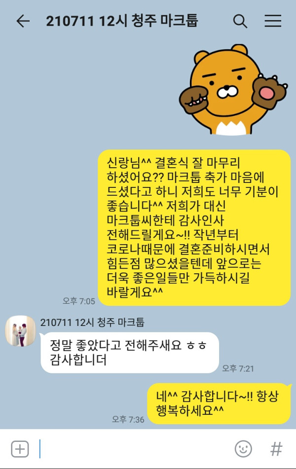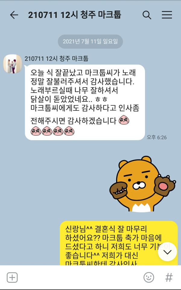 마크툽 축가 너무 마음에 드셨다고 이렇게 감사연락을