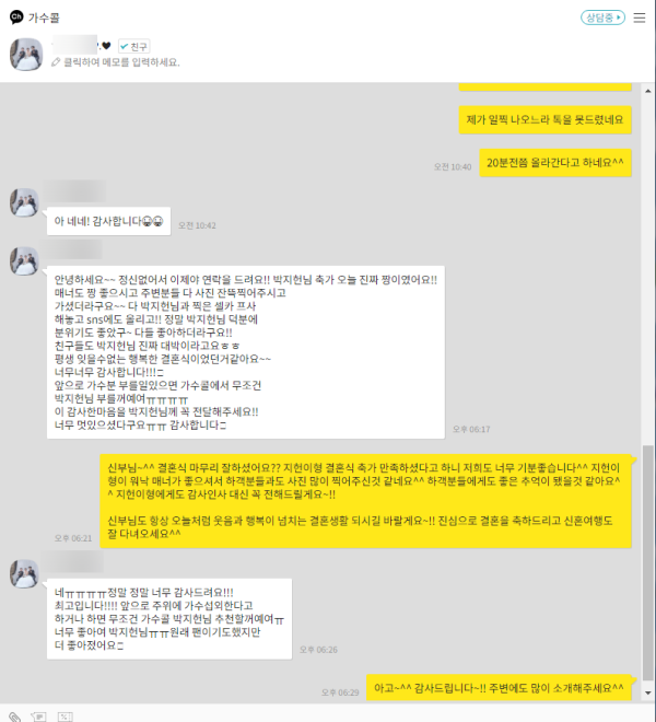 가수 VOS 박지헌씨의 결혼식축가 후기입니다^^
