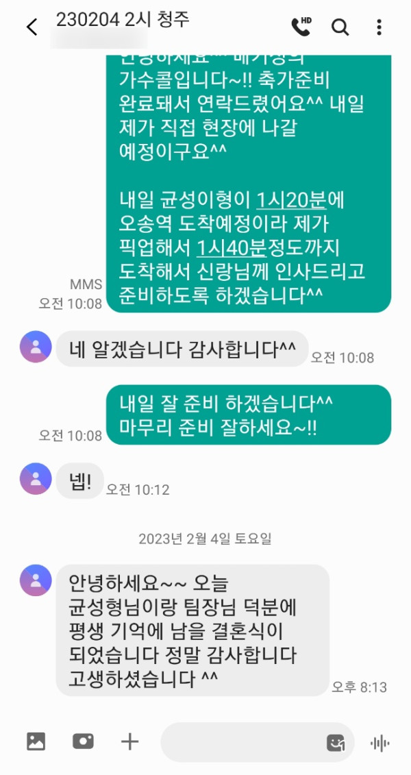 지난 2월 4일 청주 아모르아트에서 진행된 노을 강균성 결혼식축가 후기입니다^^
