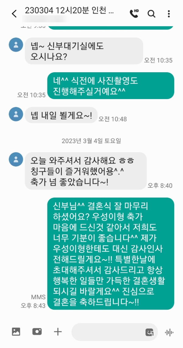신부님께서 축가 너무 좋았다고 친구들도 다들 너무 즐거워했다고 감사하다고 이렇게