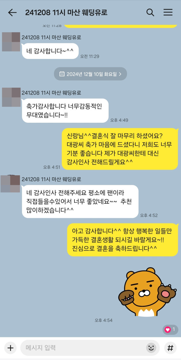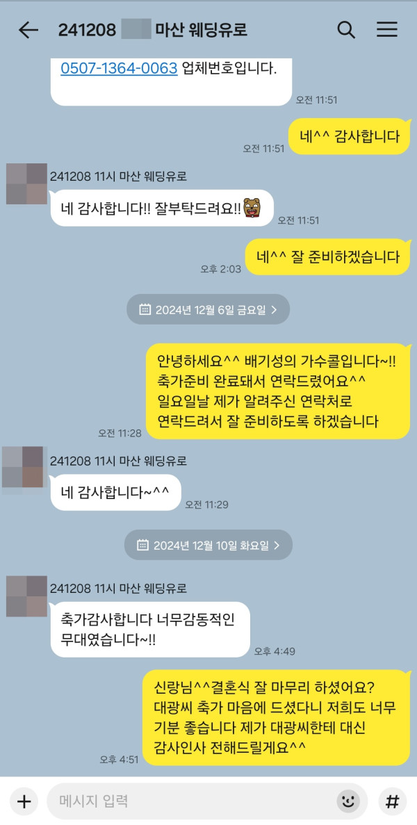 신랑님께서 평소 팬이셨다고 하는데 이렇게 기억에 남을 결혼식축가가 됐다고 감사하다고 연락을 주셨어요