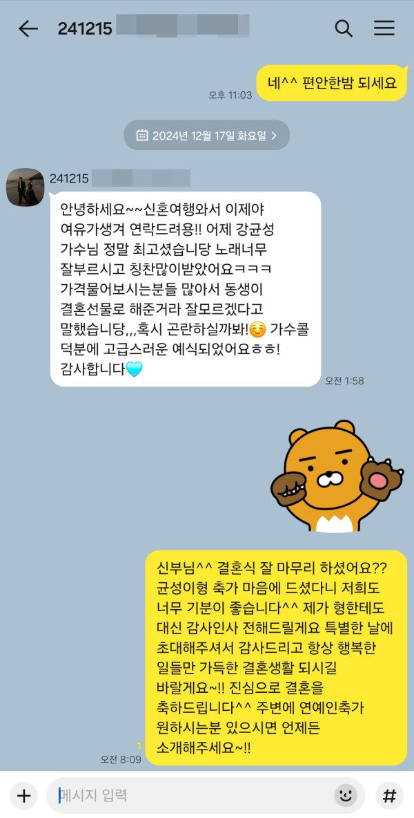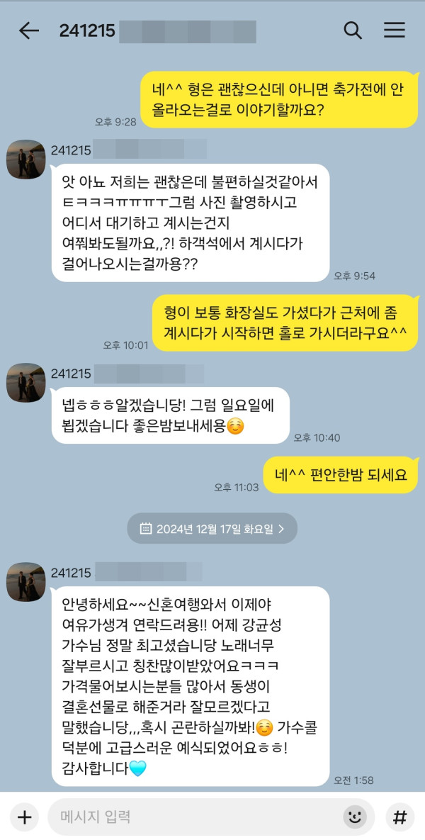 12월 15일 노을 강균성 결혼식축가 후기입니다^^