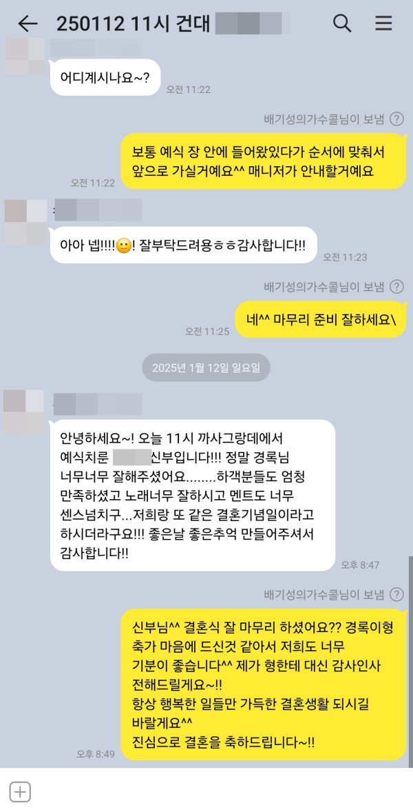 - 다음글1월 3일 가수 VOS 결혼식축가 후기입니다^^ 25.01.06