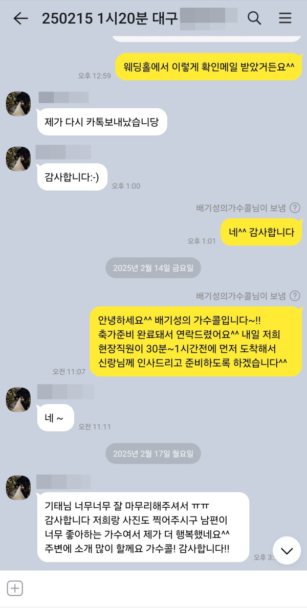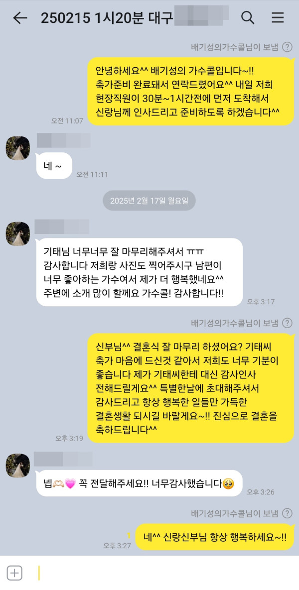 축가 너무 잘 불러주셔서 너무 좋았다고 감사하다고 이렇게 연락을 주셨네요^^