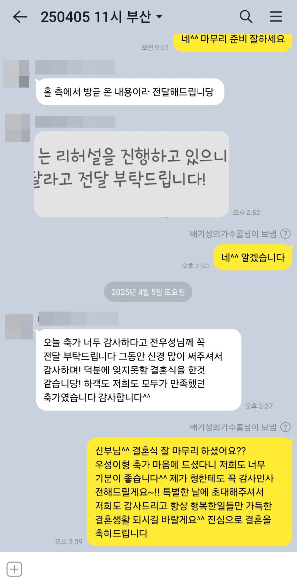 저희가 대신 감사인사 전해드렸구요 항상 행복한 일들만 가득한 결혼생활 되시길 바랄게요