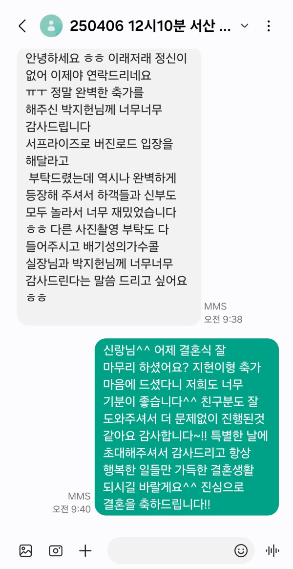 신랑님께서 서프라이즈로 너무 잘 진행됐다고 감사하다고 이렇게 연락을 주셨어요^^