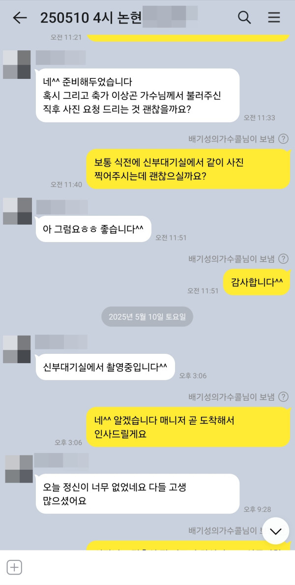 연락을 주셨어요^^ 특별한 날에 함께 할 수 있어서 좋았고 항상 행복한 일들만 가득한