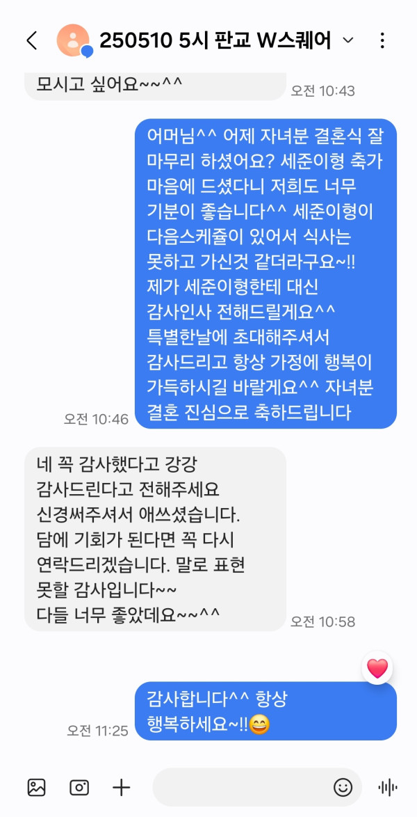 신랑님 어머님께서 신청을 해주셨는데요 정말 너무 최고였다고 이렇게 극찬을 하셨답니다~!!