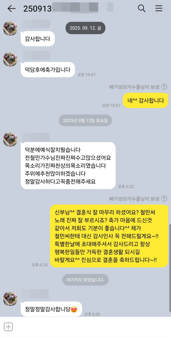 - 이전글9월 20일 노을 이상곤 결혼식축가 후기입니다^^ 25.09.21